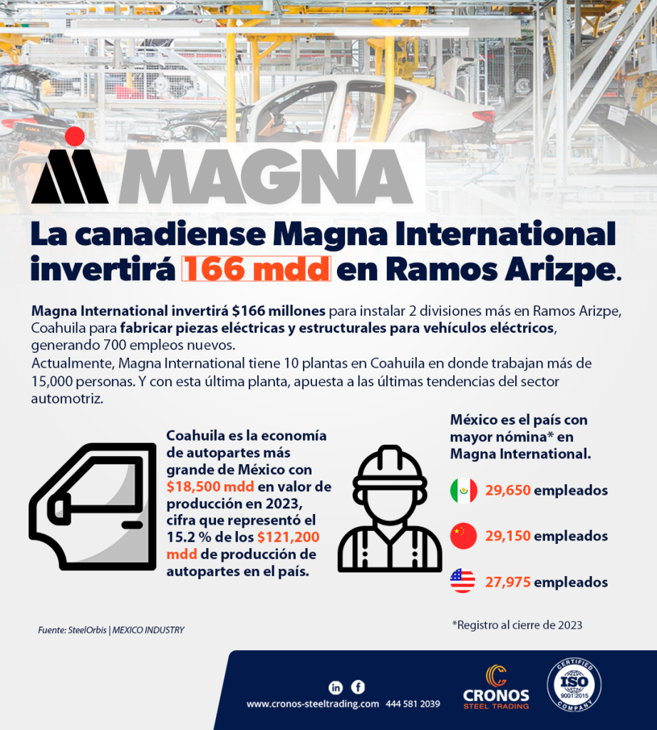 ‘MAGNA’ INVERSIÓN🚘 Magna International cuenta con 32 instalaciones de fabricación en el país. 📞 444 581 2039 📱 WhatsApp https://bit.ly/3KjVNCH 💻 www.cronos-steeltrading.com 📍 Calle Palmira 260, Piso 2 Oficina 6, Desarrollo del Pedregal, San Luis Potosí. #magna #international #inversion #invesatment #mexico #coahuila #ramosarizpe #automotive #news