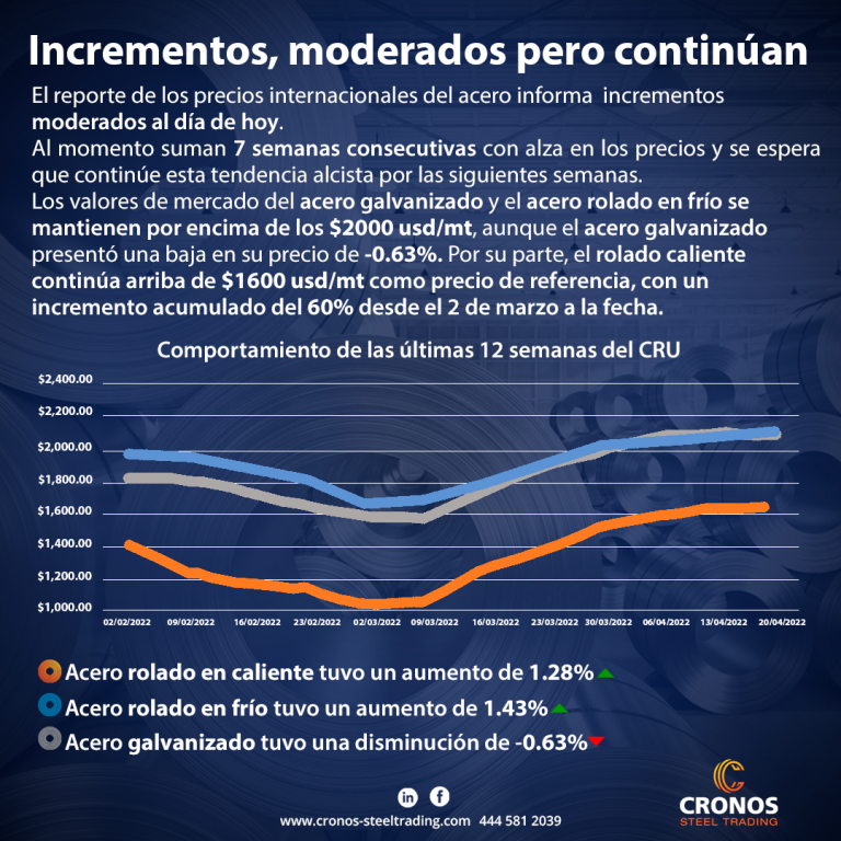 Los precios del acero siguen presentando aumentos, aunque ahora lo hacen moderadamente.