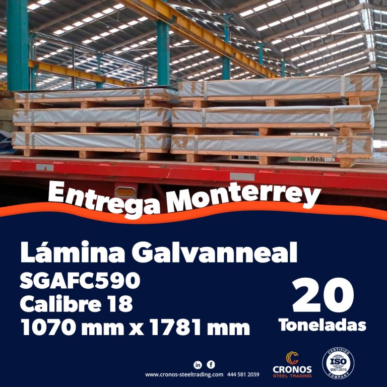 Compartimos la entrega de 20 toneladas de lámina galvanneal calibre 18 medida 1070 mm x 1781 mm bajo la norma SGAFC590.